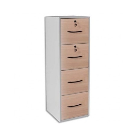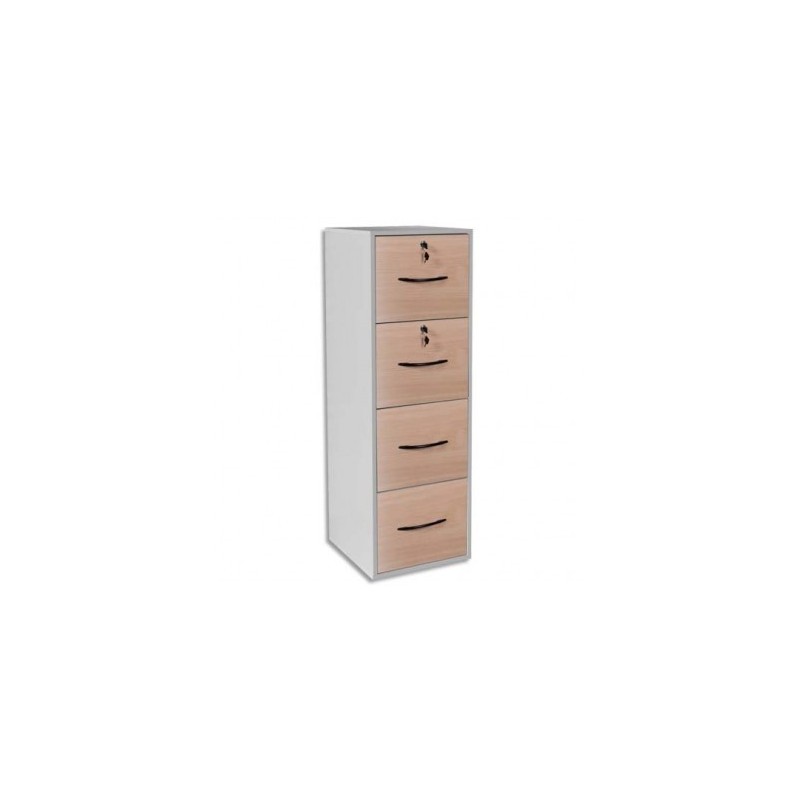 MT INTERNATIONAL Classeur mélaminé 4 tiroirs dossiers suspendus corps blanc tiroirs hêtre - L42 x H133 x P44 cm