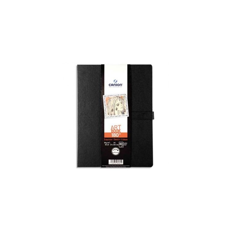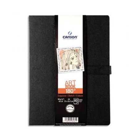 CANSON Carnet de 80 feuilles de papier dessin ART BOOK 180° 96g 21,6 x 27,9 cm noir