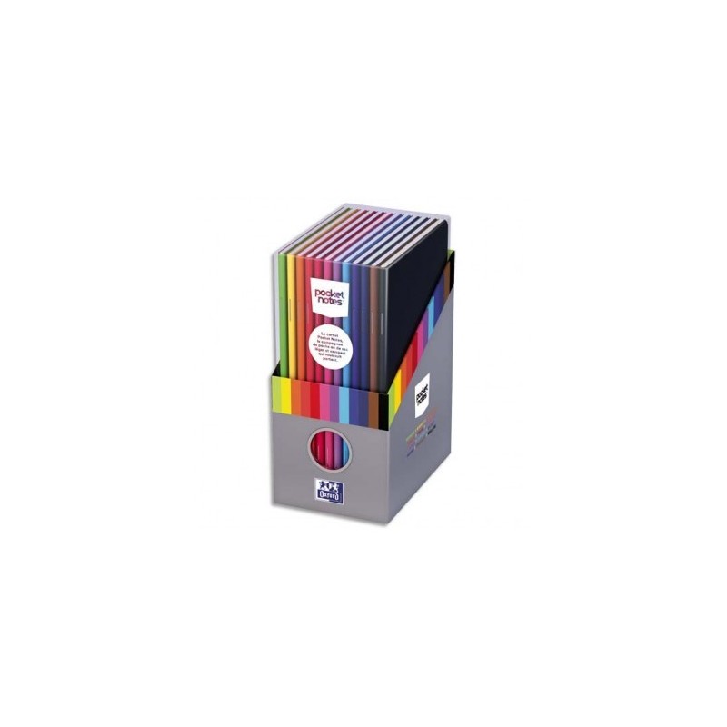 OXFORD Boîte cadeau de 12 carnets POCKET NOTES agrafé 9 x 14 cm 48 pages ligné 6 mm. Couvertures cartes assorties