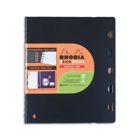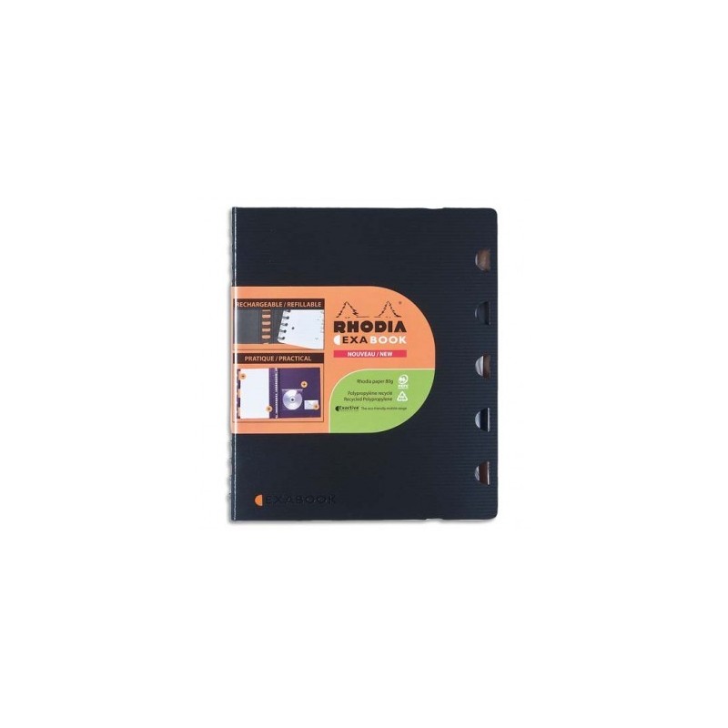 RHODIA Cahier rechargeable EXABOOK spirale 160 pages 90g 5x5 16 x 21 cm Couverture polypropylène noire