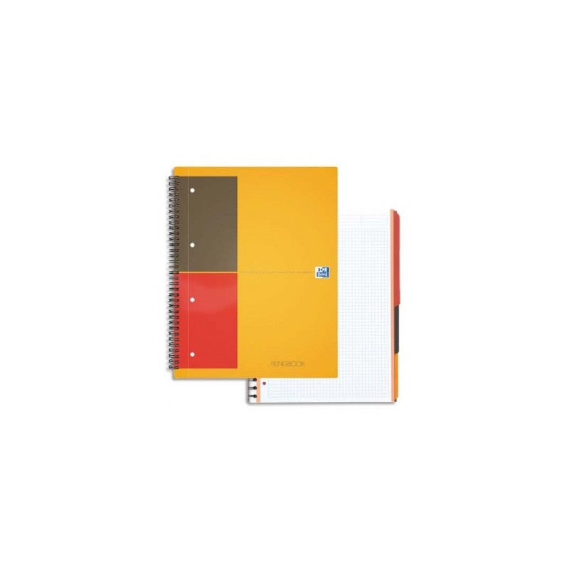 OXFORD Cahier FILINGBOOK couverture polypropylene orange spirales 200 pages perforées 80g lignée 6 mm 21 x 31,8 cm