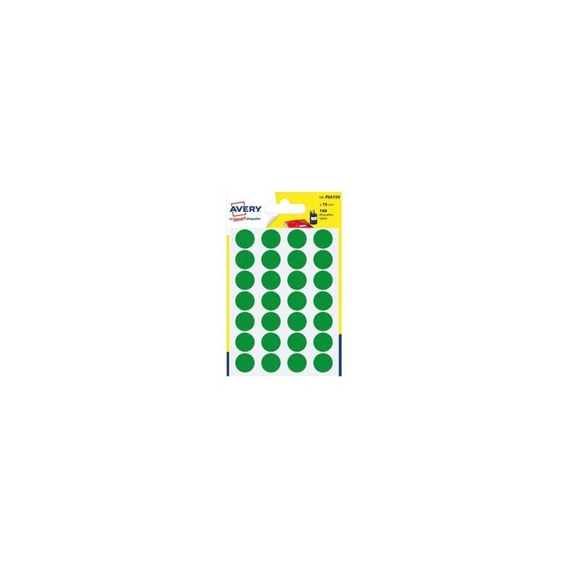 AVERY Sachet de 168 pastilles diamètre 15 mm. Ecriture manuelle. Coloris vert