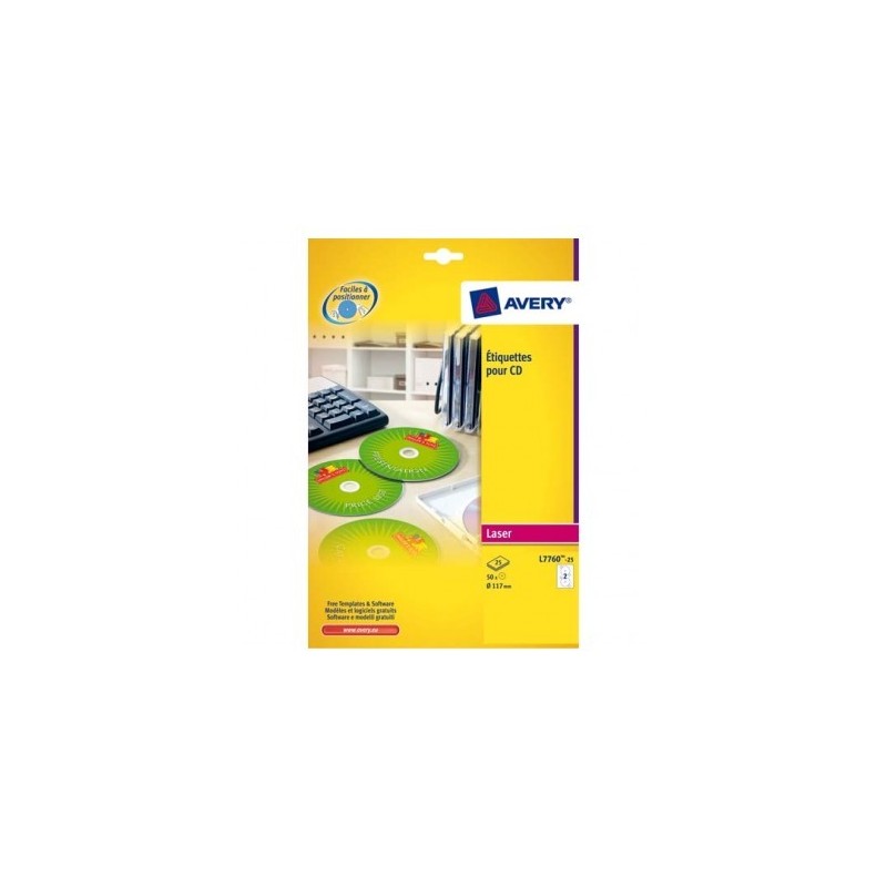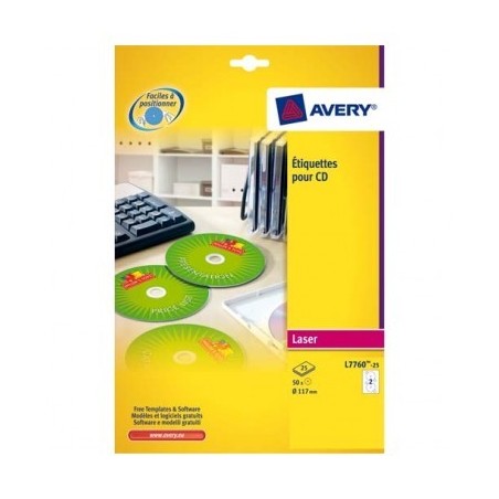 AVERY Boîte de 50 étiquettes laser couleur pour CD et DVD L7760-25