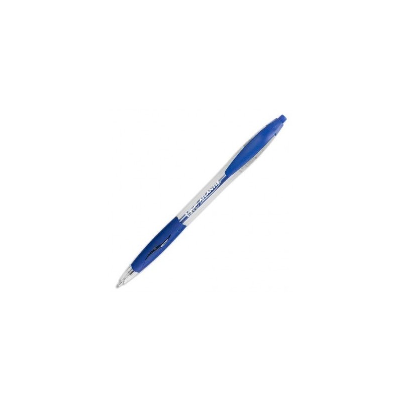 BIC Stylo à bille rechargeable pointe moyenne rétractable encre bleue corps transparent et grip ATLANTIS